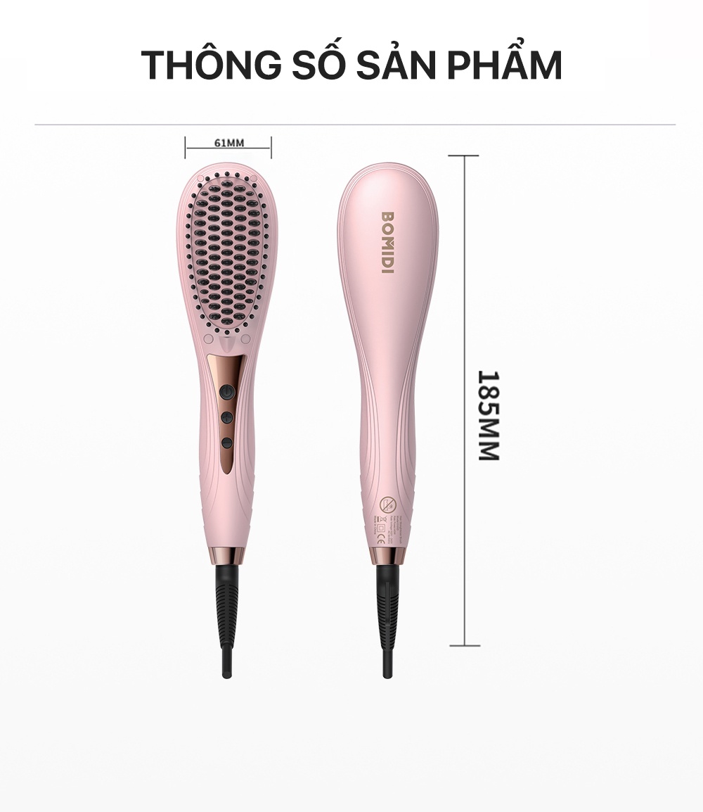 Để tạo kiểu dễ dàng với những mái tóc xoăn rối thì lược điện là một vật dụng vô cùng thiết yếu. Và BOMIDI HB1 là phiên bản lược điện thông minh, hỗ trợ tạo mẫu tóc và thẳng tóc một cách hiệu quả. Bên cạnh đó, thiết bị này còn hỗ trợ cung cấp ion âm cho mái tóc bóng mượt và chắc khỏe.