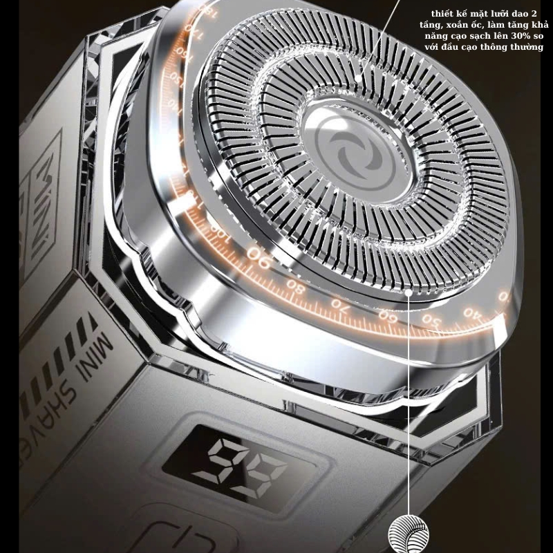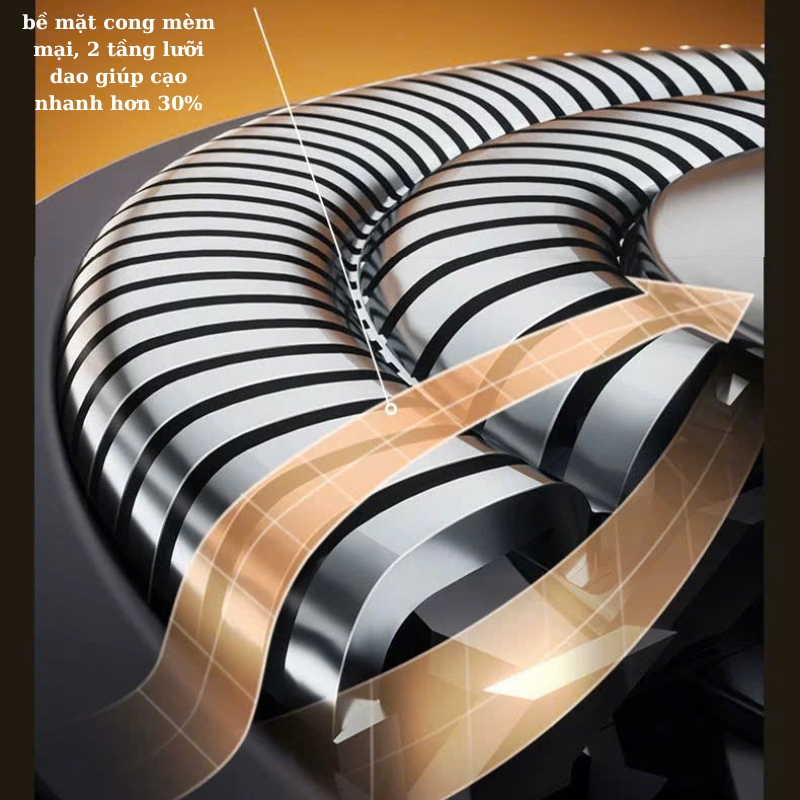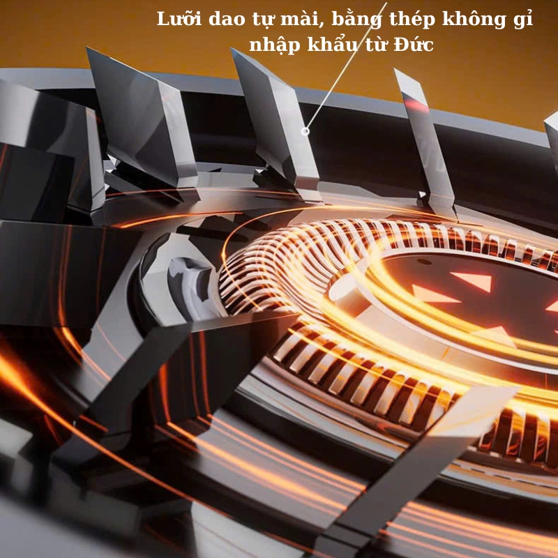 Lưỡi dao được làm từ thép không gỉ nhập khẩu từ Đức, chất lượng cao, bền và an toàn cho da mặt. Cơ chế tự mài sắc giúp duy trì độ bén theo thời gian mà không cần thay thế thường xuyên. Đây là yếu tố giúp người dùng tiết kiệm chi phí trong quá trình sử dụng.
