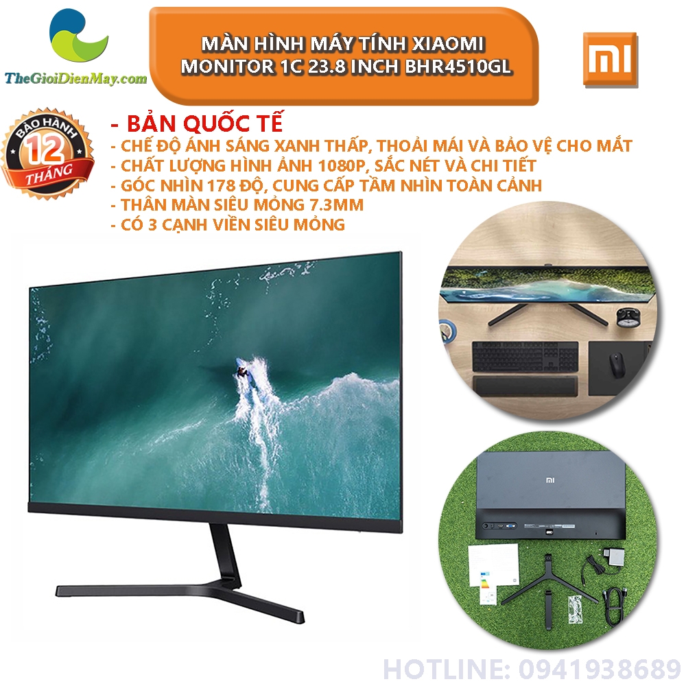 Kích thước lớn, viền siêu mỏng, hình ảnh sắc nét 60 Hz, và trên hết là bảo vệ mắt bạn luôn an toàn, màn hình 23.8 inch Xiaomi Monitor 1C BHR4510gl là những gì cần thiết cho một dàn PC giải trí và làm việc với hiệu suất tối ưu.