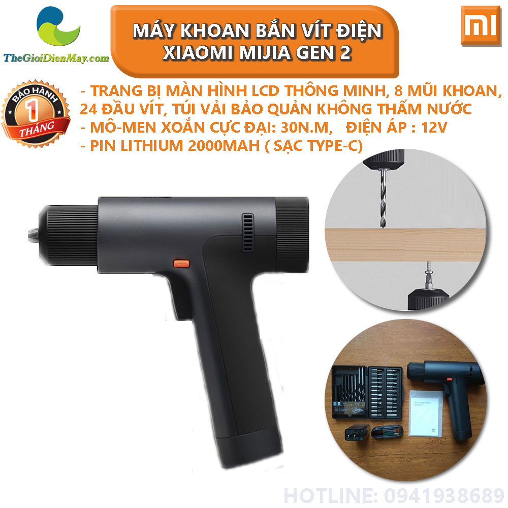 Máy khoan bắn vít điện cầm tay thông minh Xiaomi Mijia Gen 2 trang bị Pin lithium (Giao diện sạc Type-C đa năng) chất lượng cao 2000mAh, sạc đầy có thể bắn hơn 550 ốc vít