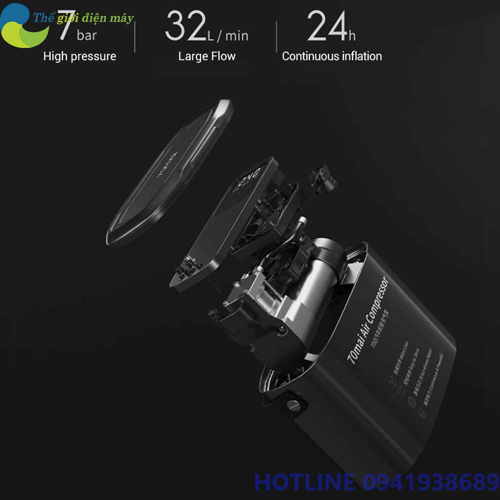 Máy bơm lốp xe ô tô mini tự động Xiaomi 70mai Air Compressor Midrive TP01 sử dụng cấu trúc truyền động trực tiếp bằng kim loại, piston PTFE nhập khẩu từ Đức và vòi xi lanh hợp kim nhôm Anodide có thể dễ dàng bơm áp suất khí quyển 7bar, tốc độ dòng khí khi bơm đạt 32l/ phút. Trong 3 phút có thể bơm đầy lốp xe nhỏ, 6 phút có thể bơm đầy lốp rỗng SUV. Bên cạnh đó máy bơm TP01 được trang bị động cơ nam châm vĩnh cửu, có thể sử dụng liên tục trong 24 giờ, cho phép bơm được nhiều lốp xe hơn.