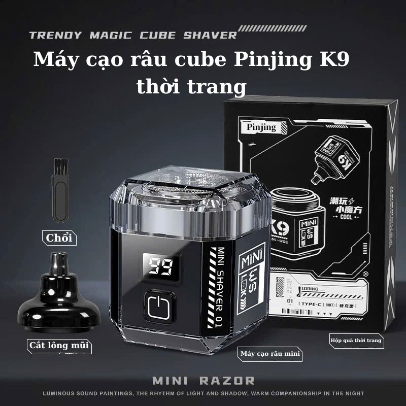 Máy cạo râu Pinjing K9 là thiết bị chăm sóc cá nhân đa năng 2 trong 1, vừa cạo râu vừa tỉa lông mũi. Sản phẩm nổi bật nhờ thiết kế nhỏ như một khối lập phương, tiện lợi khi mang đi công tác, du lịch hay để trong túi áo, túi quần. Dù có kích thước nhỏ gọn, nhưng hiệu năng của Cube K9 lại cực kỳ mạnh mẽ nhờ động cơ tốc độ cao và lưỡi dao cao cấp tự mài được nhập khẩu từ Đức. Đây là lựa chọn lý tưởng cho những ai muốn sở hữu thiết bị vừa tiện ích, vừa thời trang và dễ sử dụng.