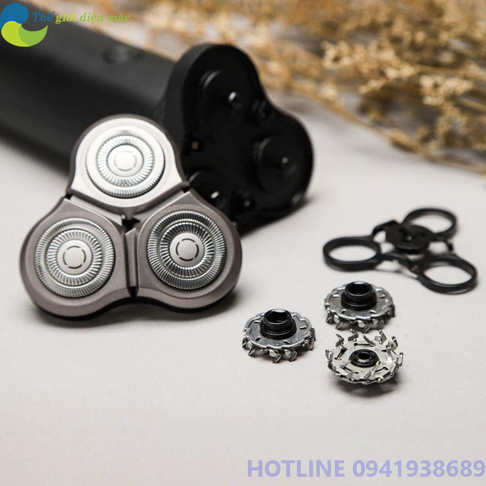 Máy cạo râu Xiaomi Mijia S300 được trang bị lưỡi dao hai lưỡi và vòng lưới kim loại kép để hỗ trợ cạo râu nhanh và sạch hơn. Vòng kép có diện tích cắt rộng hơn dao cạo vòng đơn, do đó làm tăng bề mặt cắt cho tốc độ cạo nhanh hơn 50%. Ngoài ra, Máy cạo râu Xiaomi Mijia S300 sử dụng thiết kế ba đầu cắt – mỗi đầu đều có hai lớp dao và đi kèm với hệ thống lưỡi cắt veneer nổi xoay 360 độ. Nhờ thiết kế này, máy có thể tăng diện tích tiếp xúc giữa lưỡi dao với mặt, từ đó mang đến trải nghiệm cạo râu mượt mà và kỹ lưỡng hơn.