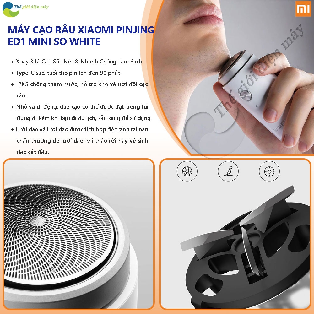Máy cạo râu mini PINJING ED1 có đầu cạo 360°, gồm 3 lưỡi dao cao cấp, có thể xử lí tất cả các loại râu cứng, mềm, dài, ngắn,… và rất khó bị mài mòn. Sản phẩm râu mini thế hệ mới được trang bị màn lưới tổ ong siêu mỏng, chỉ 0.07mm, tăng khả năng cạo sạch những sợi râu cứng và cực ngắn. Mặt lưới cong giúp người dùng linh hoạt xử lí râu mọi góc cạnh trên gương mặt, kể cả những vị trí khó làm sạch như khóe miệng hay phần mép trên.