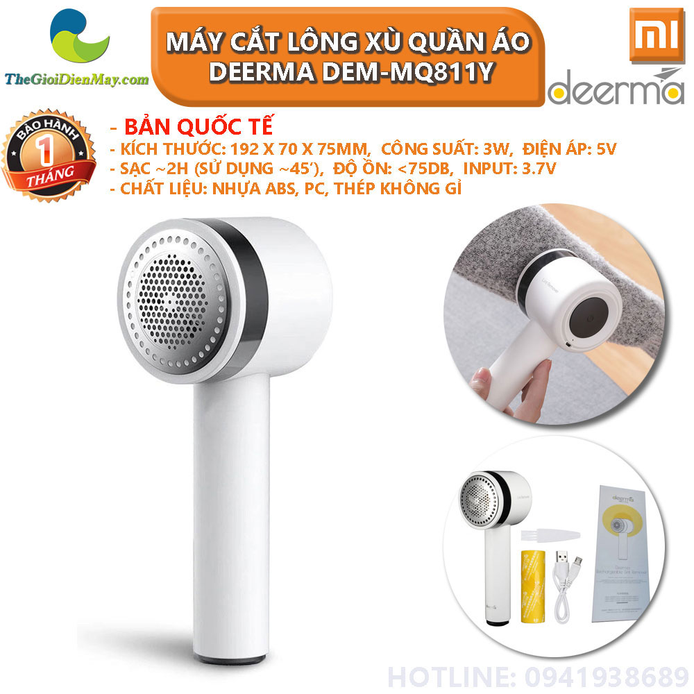 Máy cắt lông xù quần áo Deerma DEM-MQ811Y, thiết bị giúp bạn làm sạch những sợi bông bị xù trên bề mặt quần áo cũ, giải pháp đơn giản để giúp lấy lại vẻ đẹp như mới cho quần áo, vải vóc.