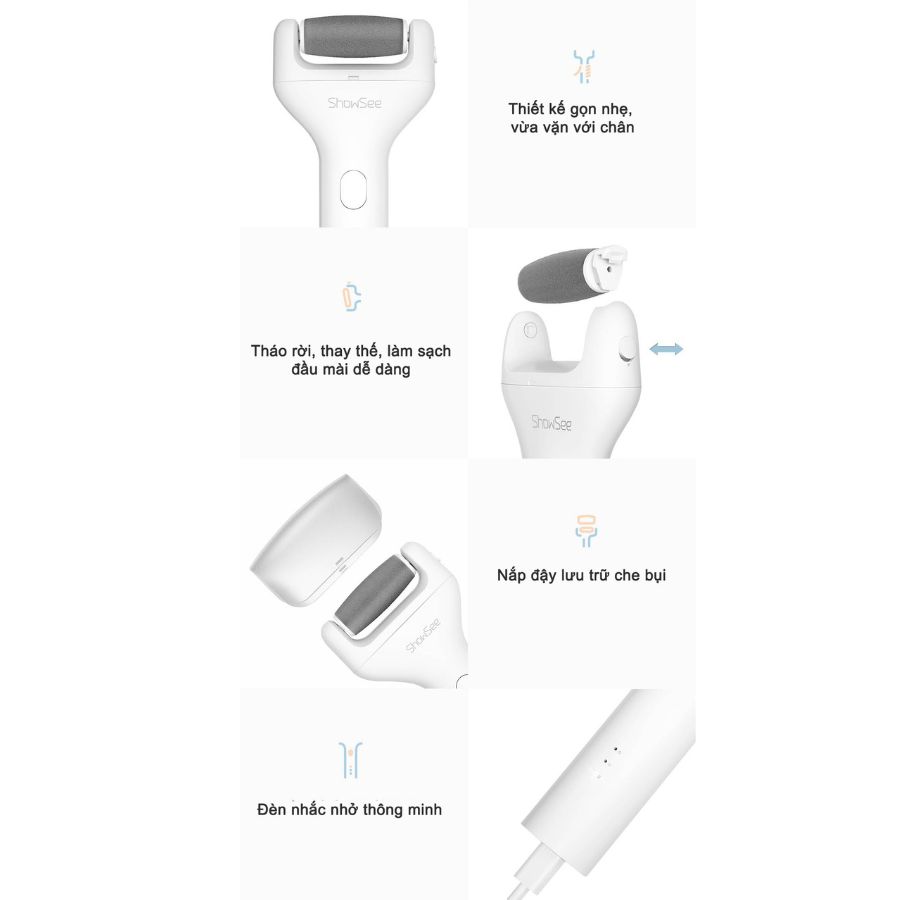 Máy chà gót chân ShowSee B1-W một trang bị hợp lý giúp xử lý nhanh các vùng da chân bị chai sần, khô ráp,... trả lại vùng da mềm mại và mịn màng, để bạn có thể sở hữu một đôi chân khỏe đẹp và tự tin hơn.