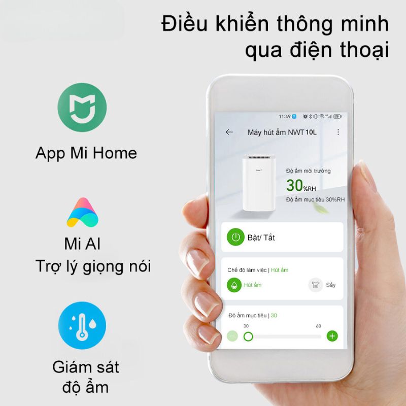 Với máy hút ẩm không khí thông minh NEW WIDETECH 10L, bạn có khả năng quản lý và điều khiển máy từ xa thông qua ứng dụng “Mi Home” trên chiếc smartphone của mình. Bằng cách kết nối và đồng bộ thông qua ứng dụng này, bạn có thể kiểm soát độ ẩm theo thời gian thực và tùy chỉnh chế độ độ ẩm phù hợp một cách dễ dàng. Ngoài ra, bạn cũng có thể tắt hoặc bật thiết bị qua ứng dụng một cách thuận tiện