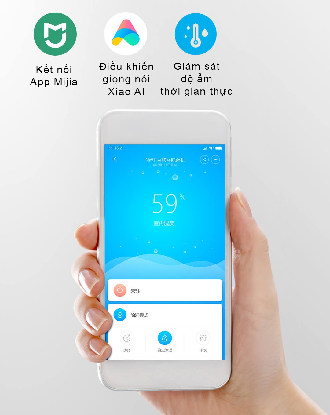 Người dùng có thể quản lý và điều khiển máy hút ẩm từ xa ngay trên chiếc smartphone của mình nhờ vào khả năng kết nối và đồng bộ qua App Mijia. Bạn có thể dễ dàng kiểm soát độ ẩm chính xác theo thời gian thực cũng như lựa chọn chế độ điều chỉnh độ ẩm phù hợp ngay trên App, từ đó thuận tiện kiểm soát độ ẩm trong nhà mọi lúc, mọi nơi. Đồng thời, thiết bị cũng có thể được liên kết với Xiao AI để người dùng điều khiển bằng giọng nói và thực hiện việc hút ẩm chỉ với một câu lệnh đơn giản.
