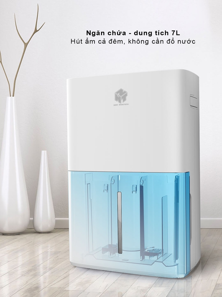 Máy hút ẩm NEW WIDETECH 30L với khả năng kiểm soát chính xác và hút ẩm liên tục giúp ngăn ngừa tình trạng ẩm ướt hiệu quả, đồng thời giữ cho không gian luôn được khô ráo và thoáng đãng, đặc biệt là ức chế sự phát sinh của vi khuẩn nấm mốc gây mùi, từ đó mang lại bầu không khí tươi mát cho cả gia đình.