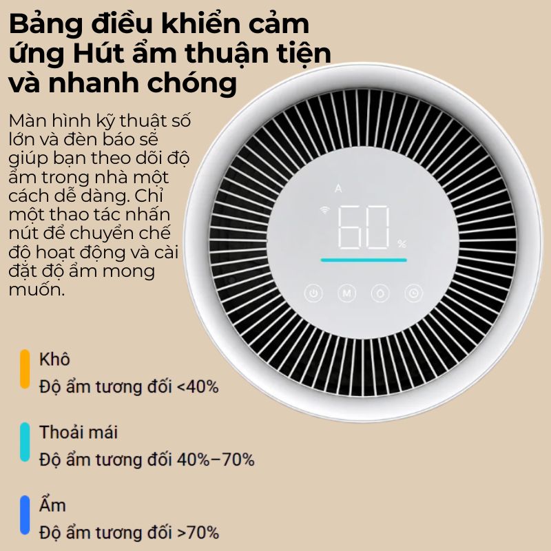 Trong mùa nồm, độ ẩm tăng cao gây ẩm mốc và mùi khó chịu. Máy hút ẩm Xiaomi 22L giúp duy trì độ ẩm trong mức 40%–70%, hạn chế nấm mốc, bảo vệ nội thất và thiết bị điện tử. Sử dụng máy hút ẩm phòng ngủ còn giúp giảm nguy cơ dị ứng và bệnh hô hấp do môi trường ẩm thấp.