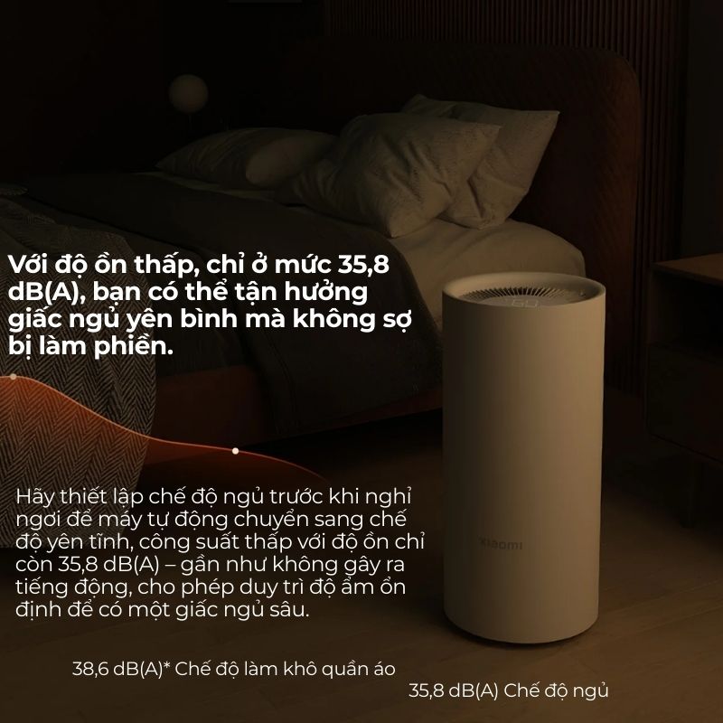 Máy hút ẩm phòng ngủ cần hoạt động êm ái. Xiaomi 22L có độ ồn tối đa ≤40 dB(A), vận hành ổn định, không gây ảnh hưởng đến giấc ngủ của người lớn và trẻ nhỏ.