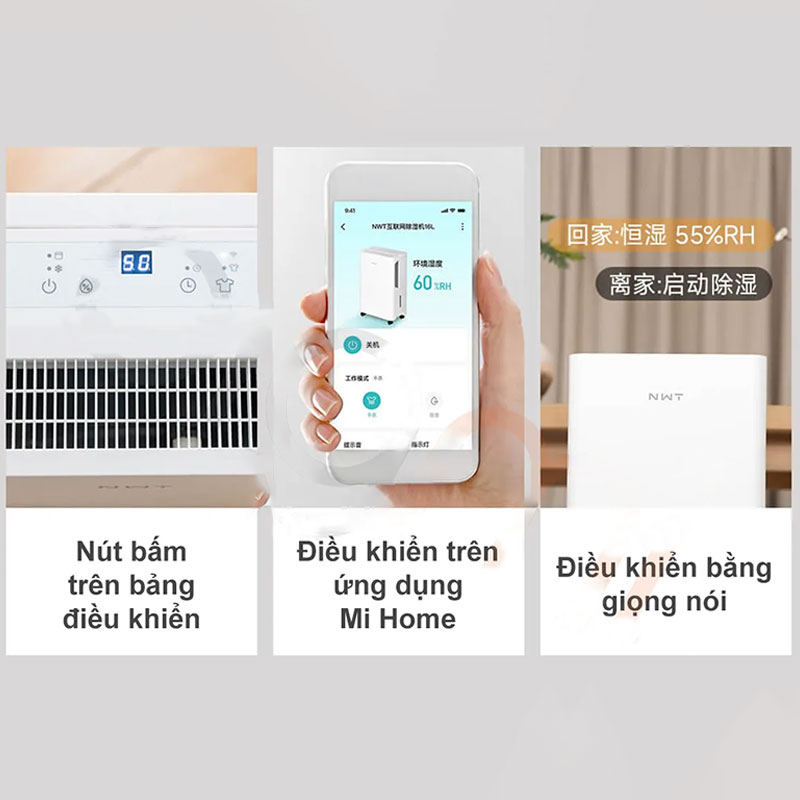 Máy hút ẩm thông minh New Widetech 16L (NWT 16L) là một trong những sản phẩm mới được giới thiệu và nổi bật của Xiaomi. Nó mang đến giải pháp hút ẩm hiệu quả nhất cho các không gian ≤35m² cùng các chế độ cài đặt độ ẩm từ 30% – 90% dễ dàng. Bên cạnh đó, thiết bị này cũng có tới 2 cơ chế thoát nước bằng ống thoát nước trực tiếp hoặc đổ nước trong hộp chứa nước dung tích 2.5L. Ngoài ra New WideTech 16L còn rất nhiều tính năng khác