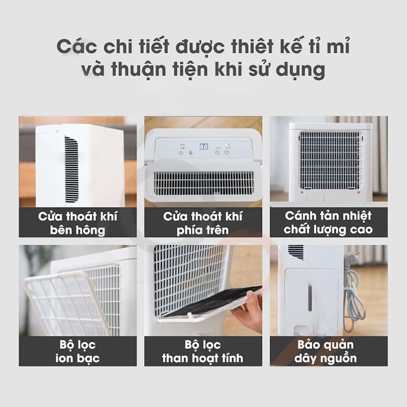 Với thiết kế cửa hút khí 3D 360° qua cửa thoát khí đa hướng phía trên, từ đó New Widetech 16L đảm bảo cho khả năng lưu thông không khí nhanh chóng, giữ độ ẩm đồng đều trong không gian. Điều này không chỉ tăng hiệu quả hút ẩm mà còn hỗ trợ làm khô quần áo nhanh chóng mà không gây hại đến chất liệu.