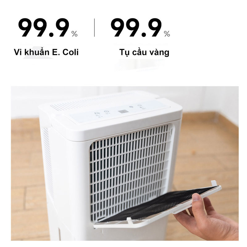 Máy hút ẩm New Widetech 16L được trang bị hệ thống lọc kép với 2 bộ lọc cực kỳ hữu ích trong quá trình sử dụng gồm: Bộ lọc kháng khuẩn ion bạc và bộ lọc than hoạt tính giúp thanh lọc không khí và loại bỏ các hạt vật chất ô nhiễm hoặc ô nhiễm do vi khuẩn gây ra. Hệ thống lọc kép này trên máy hút ẩm New Widetech đạt hiệu quả lên tới 99.9% cho các loại vi khuẩn như E. Coli và tụ cầu vàng. Từ đó giúp không gian trong nhà của bạn luôn được bảo vệ 24/7. Bên cạnh đó, để bảo đảm hiệu suất làm việc của hệ thống lọc thì người dùng nên thay thế bộ lọc than hoạt tính sau 500 giờ sử dụng.