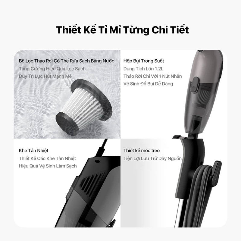- Nâng cấp ống dẫn khi tuyến tính giúp giảm thất thoát luồng khí và tăng hiệu quả hút bụi