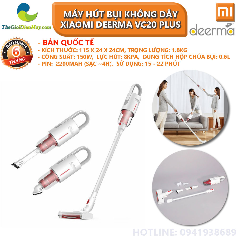 Nếu bạn đang tìm kiếm một chiếc máy hút bụi với ngoại hình đẹp mắt, linh hoạt chuyển đổi chế độ hút, lực hút mạnh mẽ đồng thời không cần cắm điện trực tiếp thì Máy hút bụi cầm tay không dây Xiaomi Deerma VC20 Plus chính là sự lựa chọn hợp lý nhất. Máy được nâng cấp động cơ và lực hút lên đến 45% so với phiên bản trước đó là VC20 và VC20S. Với thiết kế không dây thuận tiện để bạn di chuyển mọi nơi cùng việc trang bị nhiều đầu chải khác nhau, giúp bạn có thể hút sạch mọi loại bụi bẩn một cách nhanh chóng và hiệu quả nhất.