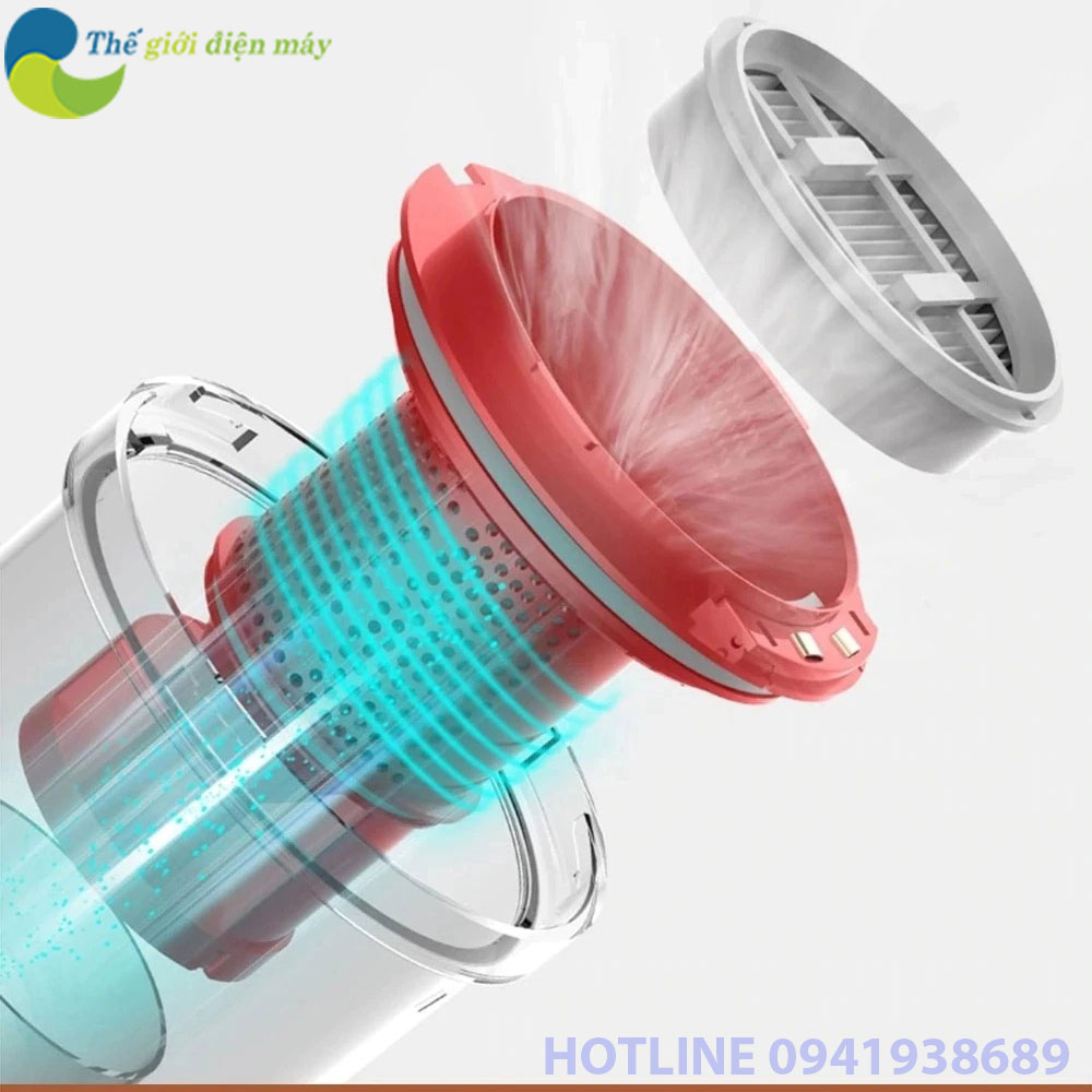 Máy hút bụi cầm tay không dây Xiaomi Deerma VC20 Plus ứng dụng công nghệ lốc xoáy giúp tăng hiệu quả hút bụi và tiết kiệm điện năng hiệu quả. Cụ thể công suất hoạt động của VC20 Plus lên đến 150W mạnh mẽ, nhưng vẫn khá yên tĩnh với độ ồn dưới 75dB. Máy hút bụi kết hợp bộ lọc không khí đạt tiêu chuẩn HEPA không những làm sạch không gian mà còn mang lại bầu không khí trong lành, kể cả những hạt bụi li ti trong không khí.