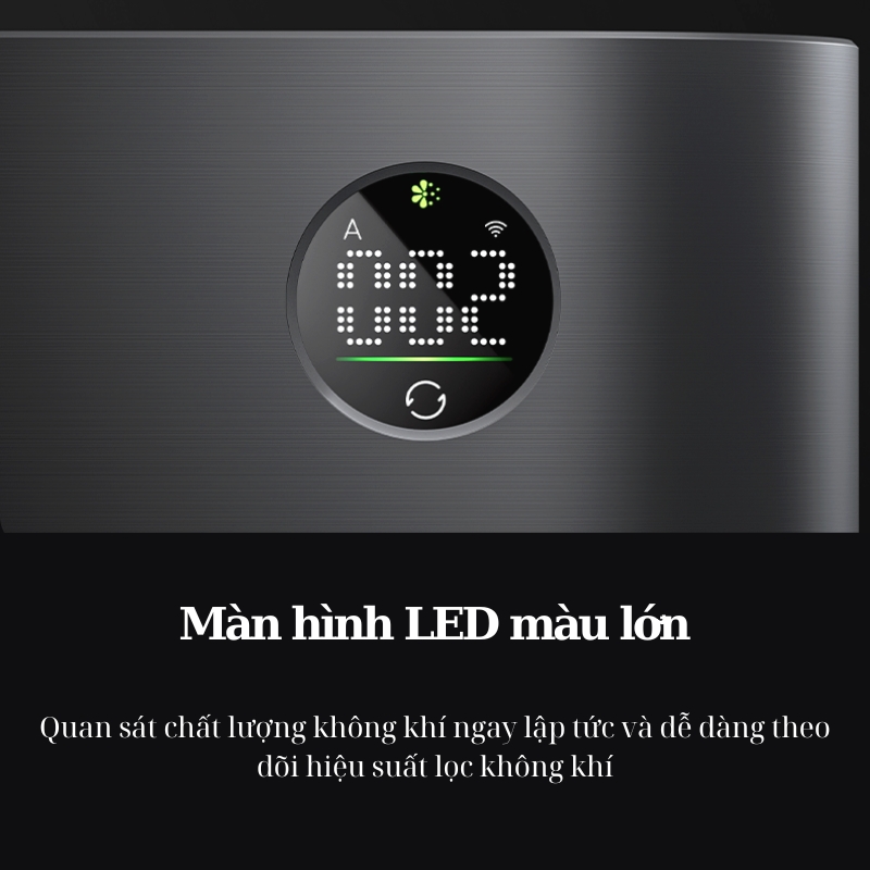 • Màn hình LED lớn: Màn hình màu LED lớn cho phép người dùng trực quan hóa chất lượng không khí và dễ dàng theo dõi hiệu suất lọc chỉ trong nháy mắt.