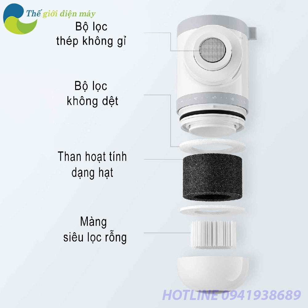 Bộ lọc nước tại vòi Mijia sử dụng màng siêu lọc sợi rỗng với độ chính xác lọc 0.1um, có thể lọc sạch vi khuẩn có hại trong nước một cách hiệu quả đồng thời giữ lại các chất có lợi, giúp lọc hiệu quả và tốt cho sức khỏe.