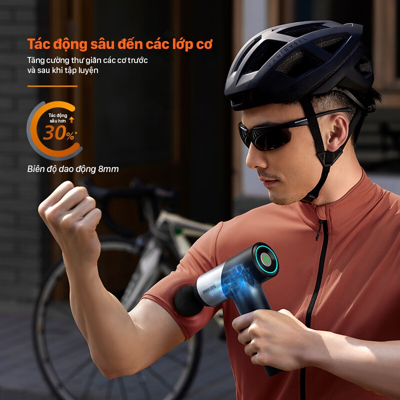 Biên độ dao động 8mm,Tạo lực tác động sâu vào các cơ dưới da.Lực massage chuyên sâu 8mm được thiết kế đặc biệt dành cho thể thao, để lực tác động chạm sâu vào cơ bắp. Cho cơ thể thư giãn, nâng cao và phục hồi tập luyện thể thao.