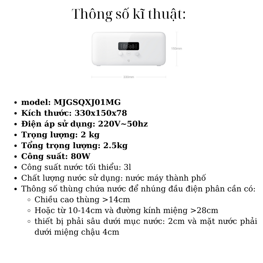 Thông số kĩ thuật của máy khử trùng rau quả xiaomi mijia:
