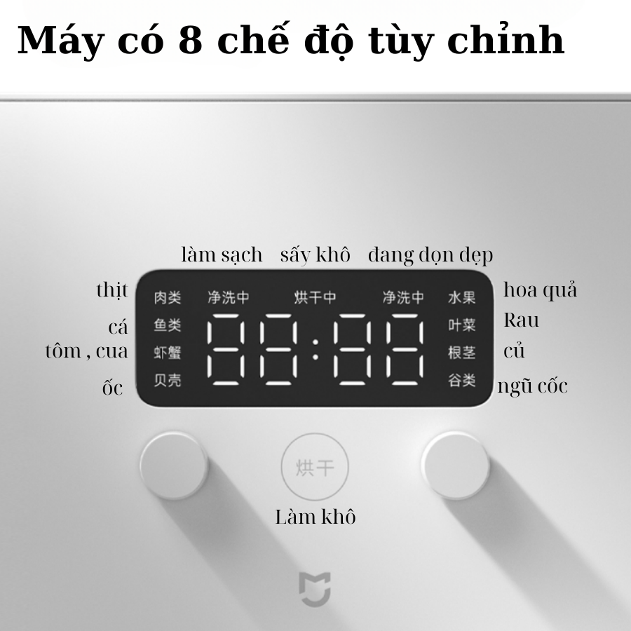 Xiaomi Mijia MJGSQXJ01MG cung cấp tám chế độ tùy chỉnh, mang lại sự linh hoạt dựa trên loại thực phẩm cần làm sạch. Máy cũng có tính năng tự làm sạch 4 bước để ngăn chặn sự phát triển của vi khuẩn, đảm bảo máy luôn sẵn sàng sử dụng và duy trì hiệu suất trong thời gian dài.