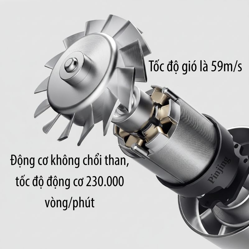 Tốc độ cực đại: Đạt tới 230.000 vòng/phút, tạo ra luồng khí mạnh mẽ với vận tốc 59m/s.