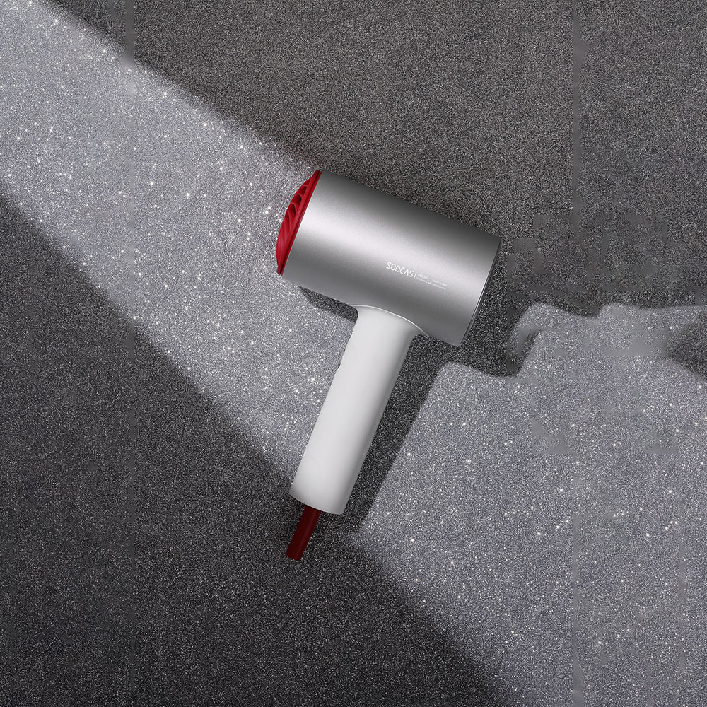 Xiaomi Soocas H5 là máy sấy tóc Anion cao cấp với 30 triệu ion âm bảo vệ tóc, nhiệt độ không khí nóng 57 °C không đổi không hại tóc, 6 cánh quạt lớn động cơ nâng cấp 20,000 vòng/phút, thiết kế nguyên khối, liền mạch không cần đinh vít.
