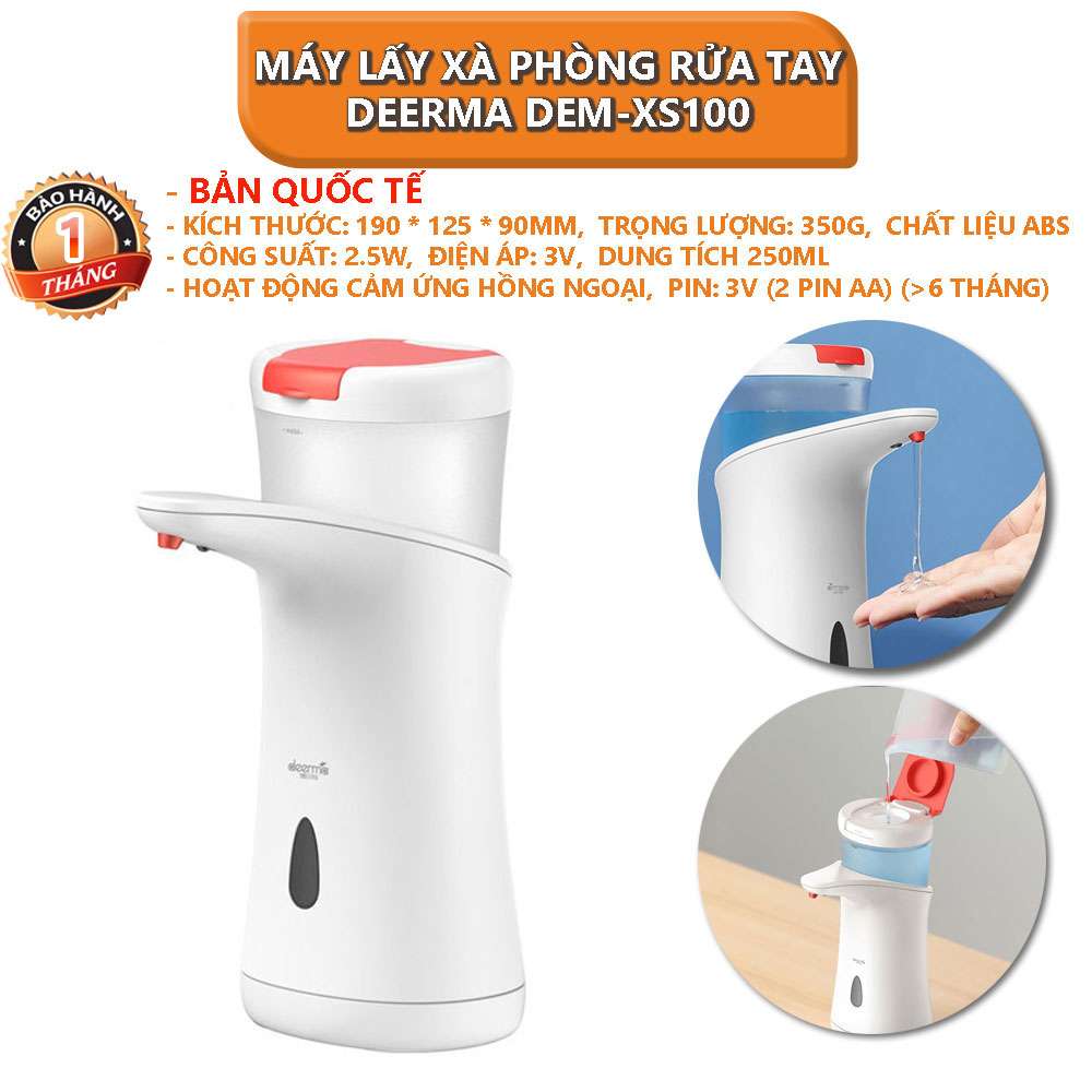 Việc duy trì thói quen rửa tay là rất quan trọng vì giúp loại bỏ nhanh chóng các vi khuẩn mà mắt thường không thể nhìn thấy. Máy lấy xà phòng (xà bông) rửa tay tự động Deerma DEM-XS100 ứng dụng cơ chế cảm ứng, lấy xà bông nước nhanh chóng chỉ khoảng 1 giây, dung tích lớn cùng việc thay thế bình chứa xà phòng dễ dàng, sẽ là một trang bị không thể thiếu dành cho gia đình của bạn. Ngoài ra bạn có thể ứng dụng là cho dung dịch cồn rửa tay, xà bông sát khuẩn, hoặc bất cứ dụng dịch loãng nào..