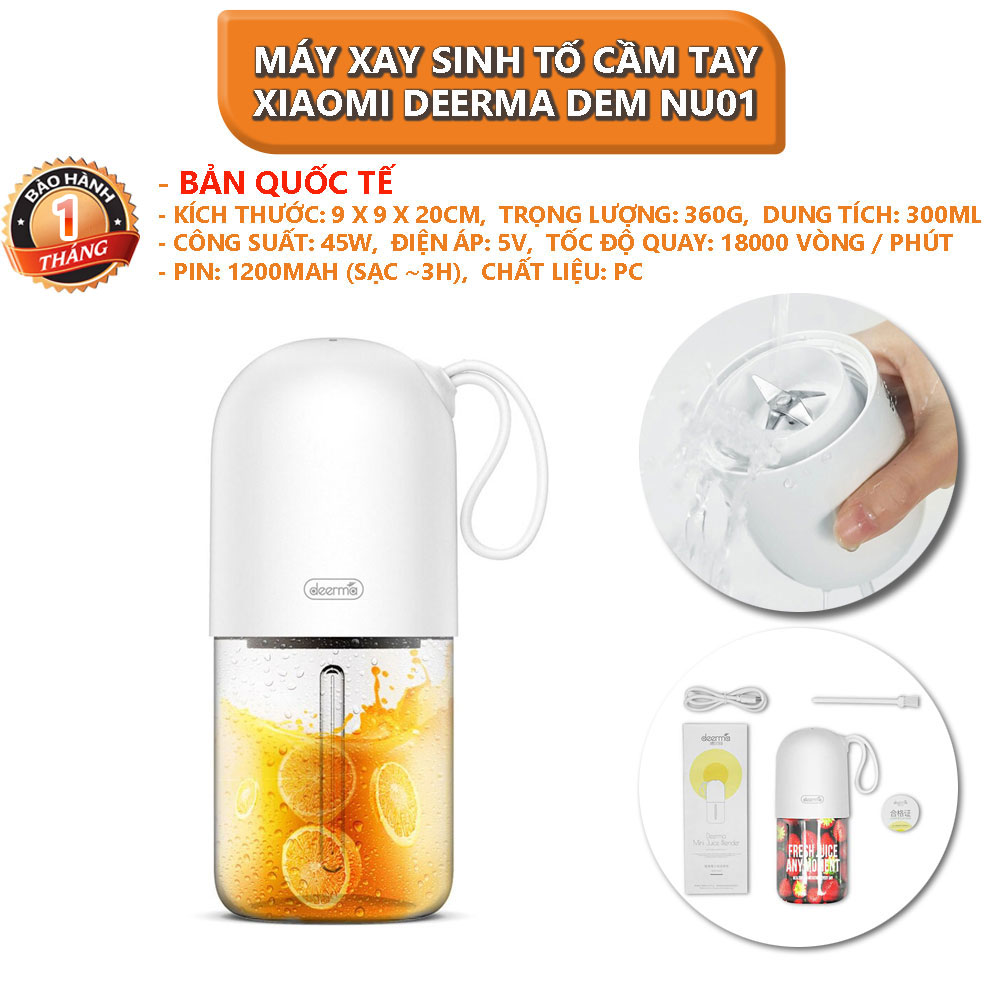 Để tối giản không gian cho hành trang đi du lịch, tiện lợi mang theo đến nơi làm việc hay đi bất kì đâu, Deerma đã sản xuất chiếc Máy xay sinh tố cầm tay không dây Xiaomi Deerma DEM NU01 vô cùng nhỏ gọn, pin 1200 mAh, thiết kế hình trụ đơn giản, không gồ ghề, nằm gọn trong lòng bàn tay