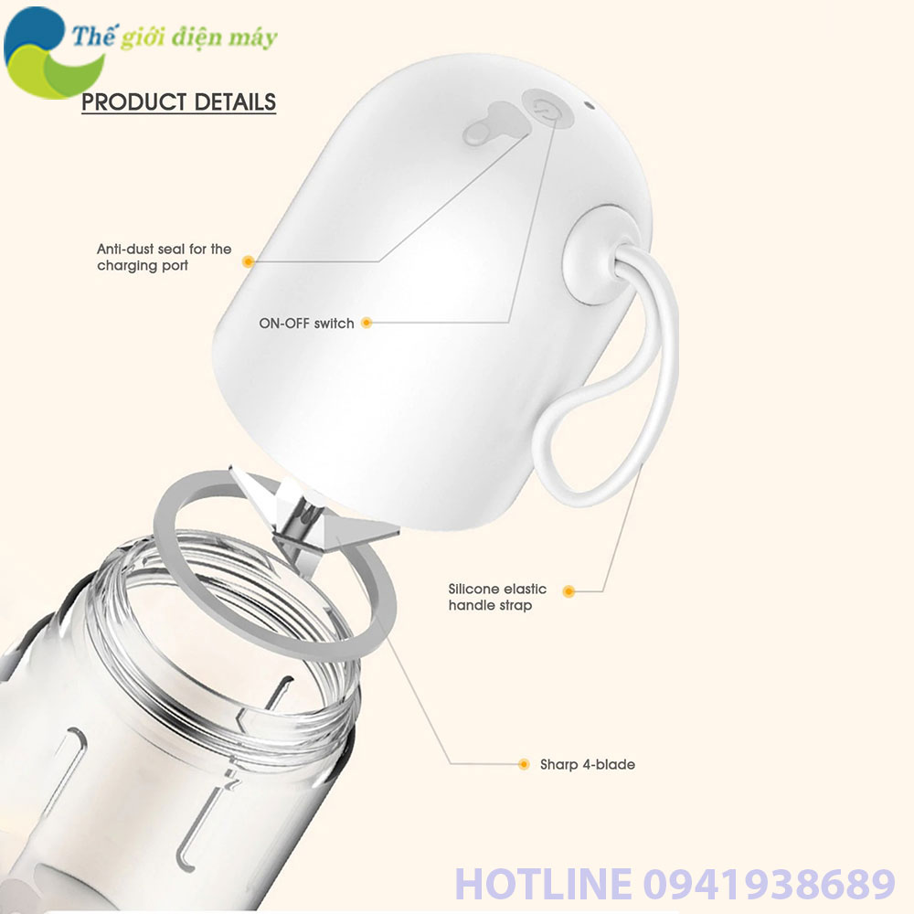 Hiệu suất ép nước 4 lưỡi mạnh mẽ giúp nước ép, sữa lắc, Sorbet và thức ăn trẻ em một cách nhanh chóng và tươi mới.Máy ép trái cây có thể được sạc qua ngân hàng điện hoặc bộ sạc xe hơi, vì vậy bạn có thể pha nước trái cây bất cứ lúc nào bạn muốn.