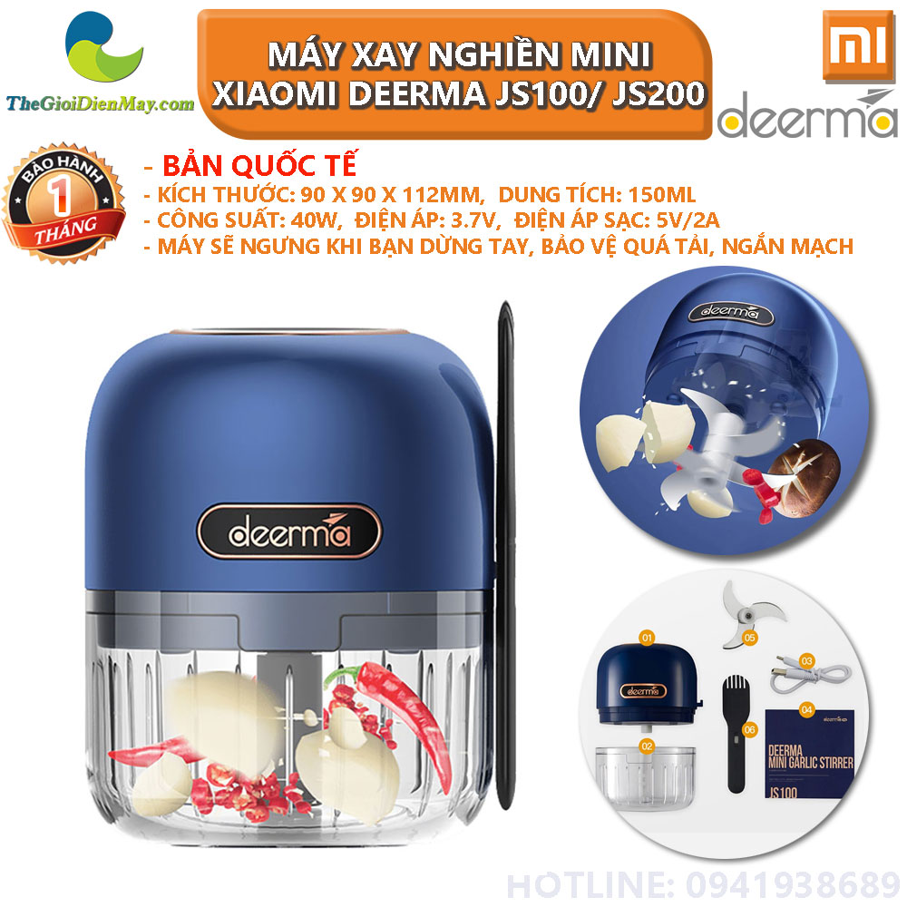 Máy xay nghiền mini đa năng không dây Xiaomi Deerma JS100/ JS200 sẽ là một trợ thủ đắc lực dành cho các chị em nội trợ trong việc nghiền nhỏ các thực phẩm như: tỏi, ớt,....một cách dễ dàng và tiết kiệm thời gian.