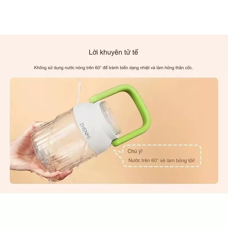 Máy xay cầm tay Zhenmi đi kèm với nắp đậy đặc biệt, có thể chuyển đổi linh hoạt giữa chế độ xay và uống. Với chế độ này, bạn không cần phải đổ ra cốc mà có thể uống trực tiếp từ bình ngay sau khi xay. Điều này đặc biệt tiện dụng cho những ai bận rộn, chỉ cần nhấn nút là có thể thưởng thức một ly thức uống tươi ngon và đầy dinh dưỡng.