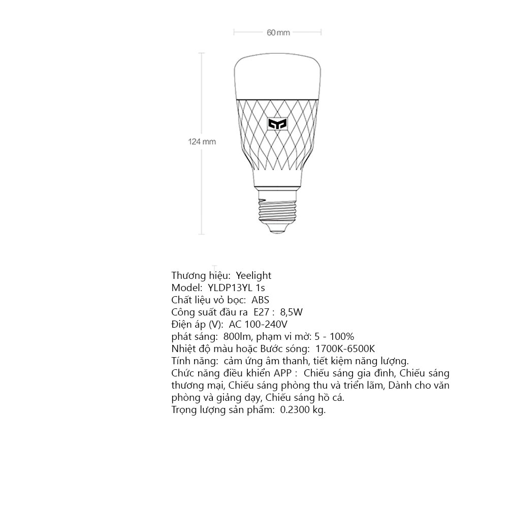 Yeelight 1S YLDP06YL được thiết kế dưới dạng bóng đèn rời tương thích với đầu đui E27 khá phổ biến. Đèn được trang bị công nghệ đèn LED thông minh với khả năng tiêu thụ điện năng thấp, chuyển đổi hàng triệu màu sắc phù hợp với môi trường và tâm trạng người dùng. Với chiếc bóng đèn này thì người dùng có thể kết hợp sử dụng cho phòng ăn, phòng ngủ hay phòng khách trong không gian gia đình mình.