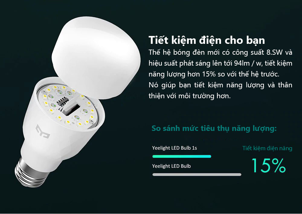 Bóng đèn Yeelight 1S YLDP06YL còn được biết đến với ưu điểm là tiêu thụ điện năng thấp, tuổi thọ cao giúp tiết kiệm không ít năng lượng cho người dùng. Với khả năng cung cấp quang thông 800 lumens, công suất chỉ 10W đèn cho tuổi thọ sử dụng lên đến 25000 giờ, cụ thể với thời lượng sử dụng 3 giờ mỗi ngày đèn có thể chiếu sáng đến 228 năm.
