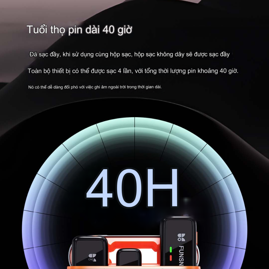 Với tuổi thọ pin lên đến 40 giờ, Micro Lavalier không dây Douying S6 TypeC là một sự lựa chọn lý tưởng cho những người cần sử dụng lâu dài mà không muốn lo lắng về việc sạc pin thường xuyên. Tuổi thọ pin dài giúp đảm bảo rằng bạn có thể thực hiện các hoạt động, ghi âm, hoặc thậm chí tham gia các sự kiện kéo dài mà không cần phải lo lắng về việc sạc pin giữa chừng. Điều này tăng tính tiện ích và độ tin cậy của sản phẩm, làm cho nó trở thành một công cụ đắc lực cho các nhu cầu ghi âm chuyên nghiệp hoặc giải trí cá nhân.