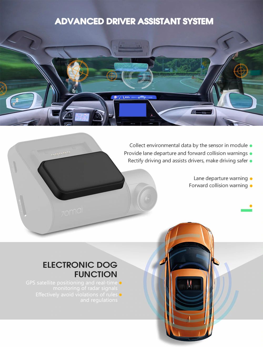 ADAS THƯƠNG, một hiện đại highlY sophiscated tính năng an toàn được thiết kế để tăng cường an toàn lái xe,Bên cạnh đó các chức năng cơ bản của dash cam, 70mai dash cam pro sẽ đảm bảo cho bạn một an toàn hơn ổ đĩa bằng cách giám sát đồng bộ môi trường giao thông.