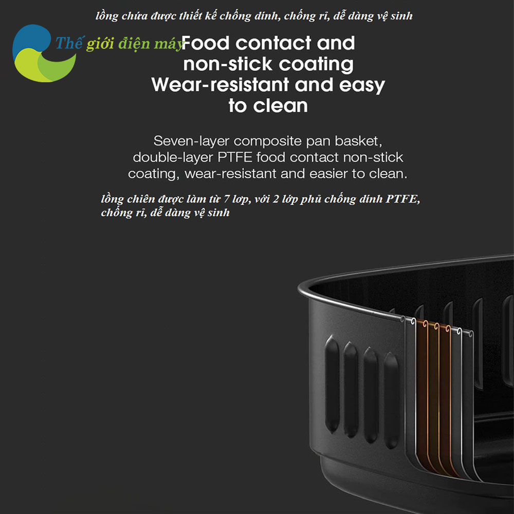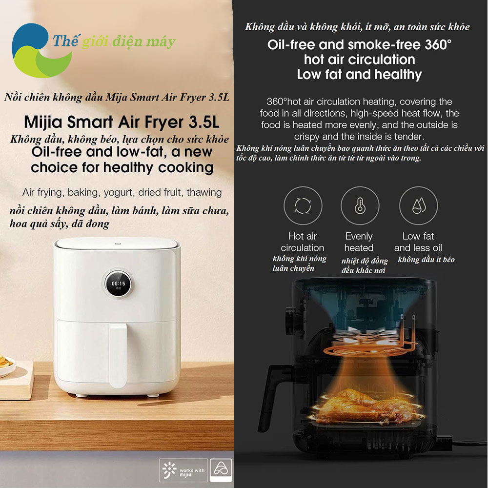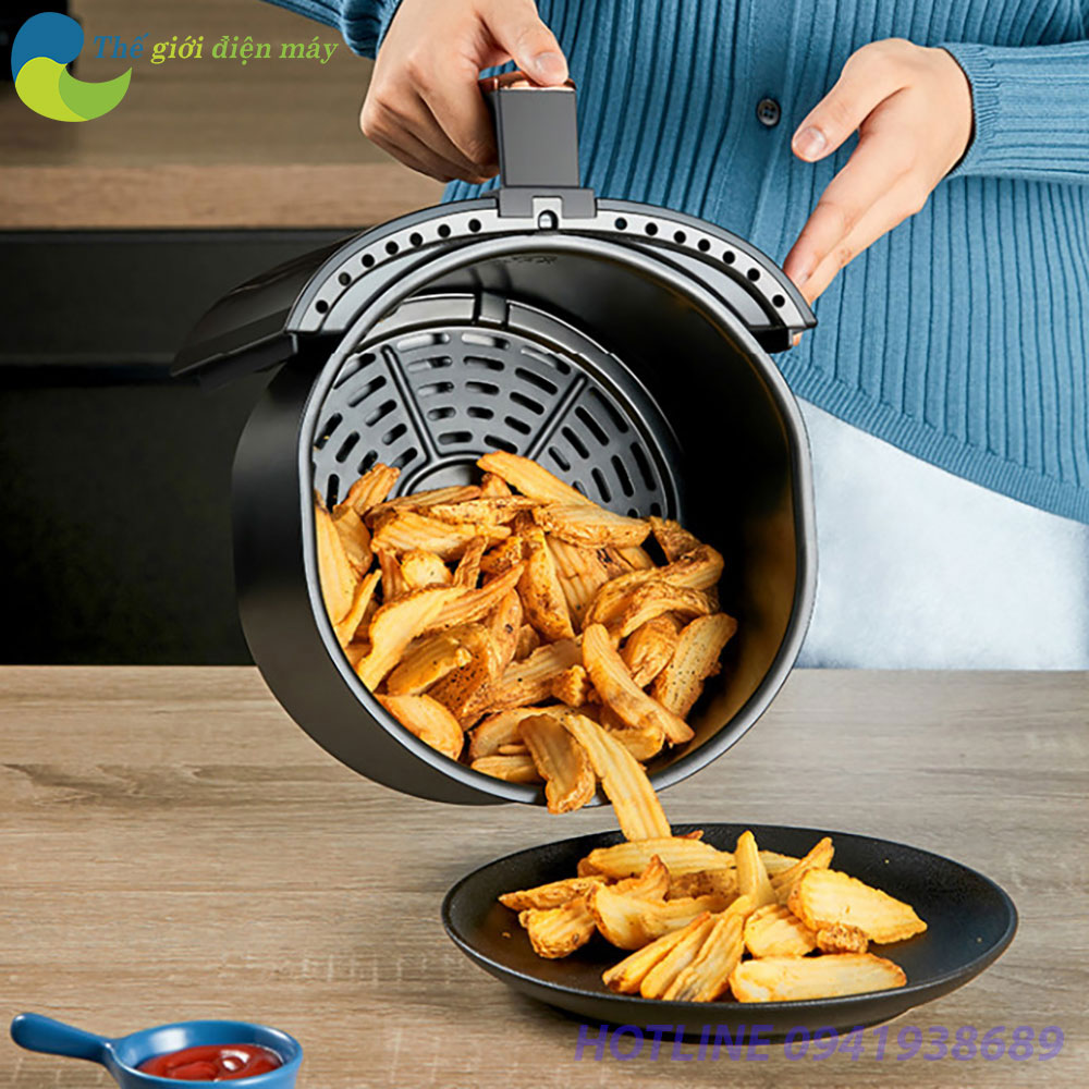 Sức khỏe là yếu tố hàng đầu được quan tâm. Nồi chiên không dầu sử dụng công nghệ chiên nướng bằng luồng khí nóng tốc độ cao kết hợp với thanh nhiệt, giúp giảm thiểu tối đa lượng dầu mỡ trong thực phẩm. Nhờ vậy, bạn có thể thoải mái thưởng thức những món chiên rán thơm ngon mà không lo ảnh hưởng đến sức khỏe, đặc biệt phù hợp với những người đang theo dõi chế độ ăn kiêng.