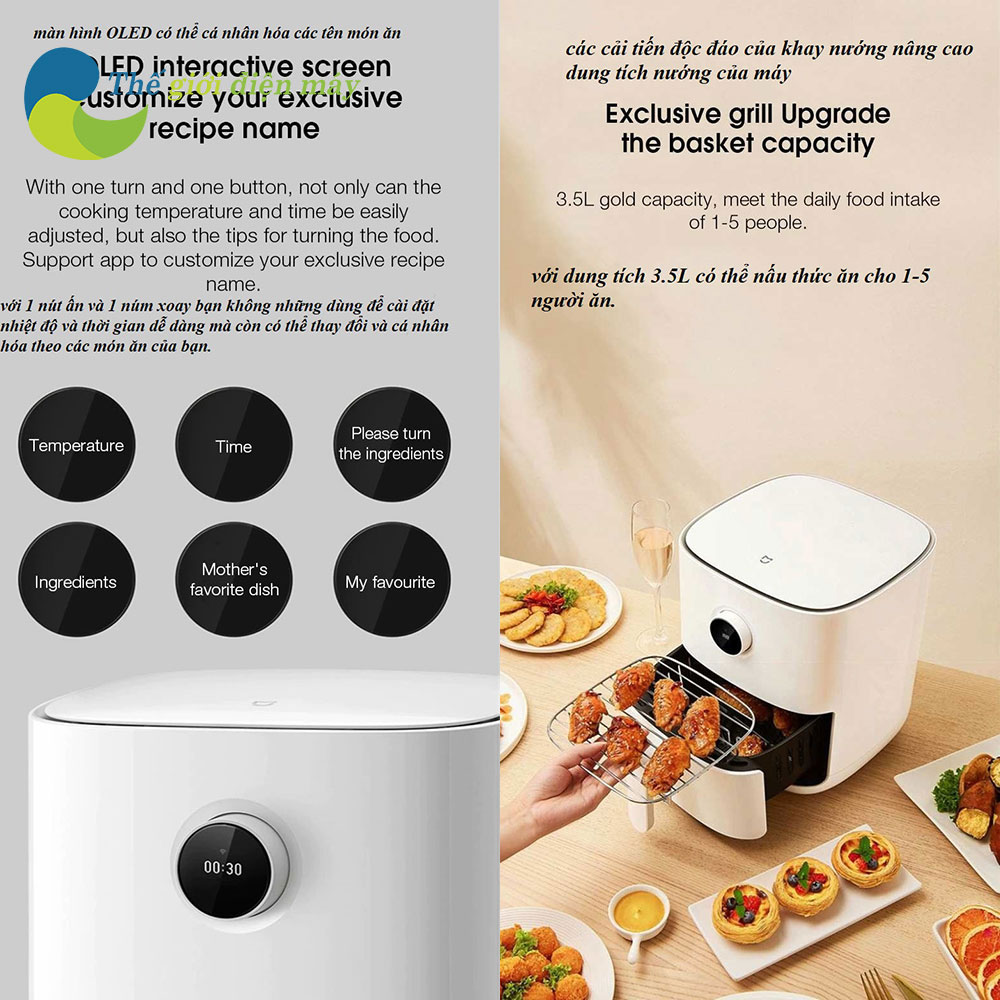 So với các thiết bị chiên nướng thông thường như lò nướng, nồi chiên điện, nồi chiên không dầu tiêu thụ điện năng thấp hơn, giúp bạn tiết kiệm chi phí cho gia đình.
