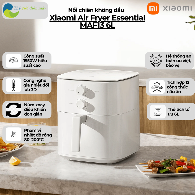Nồi chiên không dầu Xiaomi Air Fryer Essential 6L BHR8588EU là lựa chọn tối ưu cho gia đình hiện đại, kết hợp công nghệ nhiệt tuần hoàn 360° giúp nấu chín nhanh, hạn chế thức ăn dầu mỡ và dễ dàng vệ sinh. Với thiết kế dung tích 6L, sản phẩm đáp ứng nhu cầu chế biến đa dạng từ khoai tây chiên, cánh gà đến bánh ngọt, đảm bảo món ăn giòn ngon bên ngoài, mềm mại bên trong. Sản phẩm Xiaomi Air Fryer Essential 6L mang lại trải nghiệm nấu ăn an toàn, nhanh chóng và thân thiện với sức khỏe mà không làm giảm đi chất lượng món ăn. Nồi chiên không dầu Xiaomi Air Fryer Essential 6L được trang bị hàng loạt tính năng đột phá, giúp mỗi bữa cơm gia đình trở nên phong phú và dễ dàng hơn bao giờ hết.