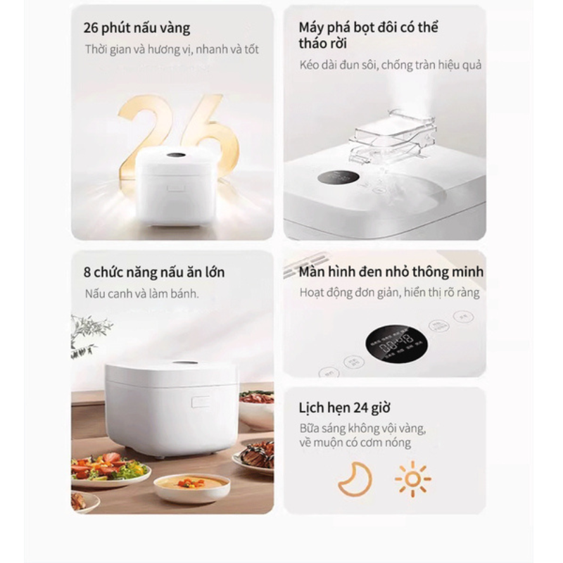 Với các chức năng này, Xiaomi Mijia IH S1 3L giúp bạn dễ dàng chuẩn bị bữa ăn đa dạng và tiện lợi hơn bao giờ hết.