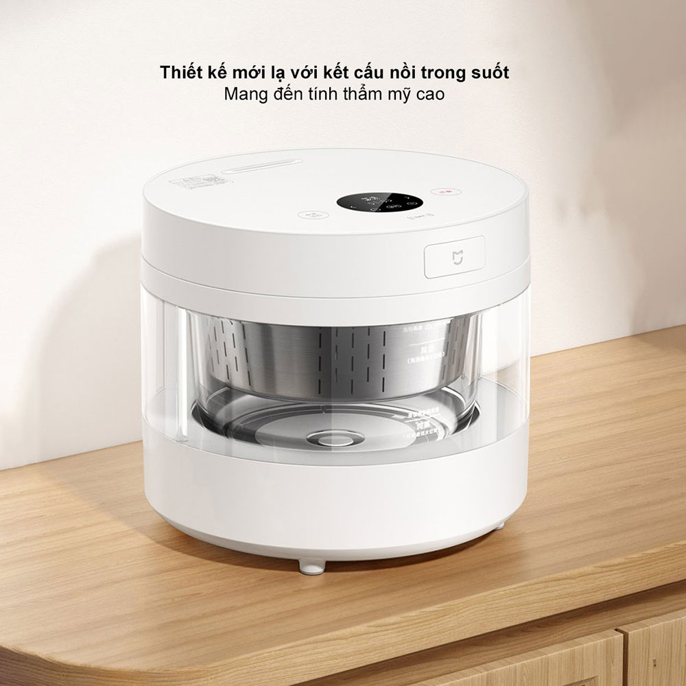 Không giống những mẫu nồi cơm điện Xiaomi thường thấy, Xiaomi Mijia MFB04M chọn cho mình ngoại hình khá mới mẻ với kết cấu trong suốt, giúp người dùng dễ dàng quan sát toàn bộ quá trình nấu. Thiết kế đặc biệt này còn mang đến tính thẩm mỹ cao, tuy đơn giản nhưng lại vô cùng thời trang, tạo điểm nhấn ấn tượng cho mọi không gian bếp.