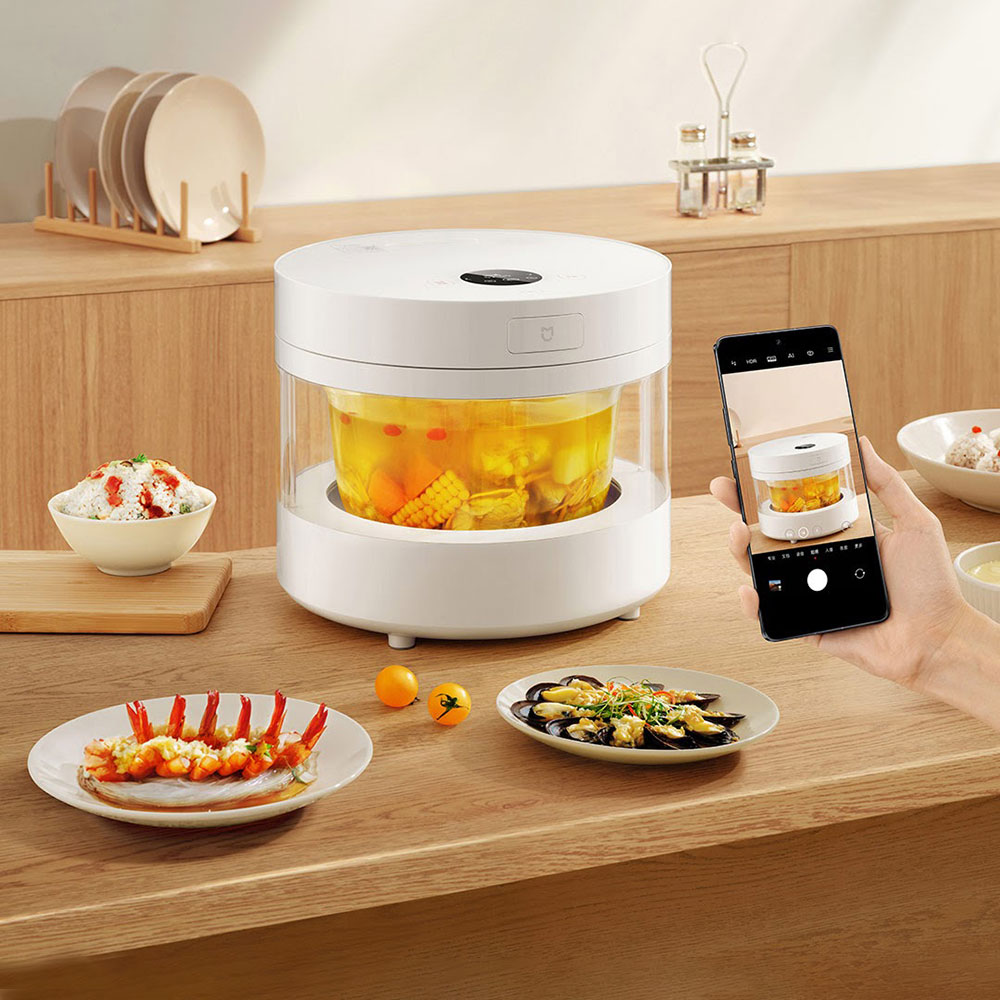 Nồi cơm điện Xiaomi với góc quan sát siêu rộng 300˚, cho phép bạn nhìn thấy toàn bộ không gian bên trong nồi, bao gồm cả nguyên liệu và thực phẩm. Không chỉ thỏa mãn trí tò mò, thiết kế trong suốt còn hỗ trợ người dùng kiểm soát quy trình nấu tốt hơn. Bạn cũng có thể chụp ảnh để ghi lại những thay đổi của thực phẩm trong quá trình nấu và chia sẻ niềm vui đến với bạn bè hoặc đăng lên mạng xã hội.