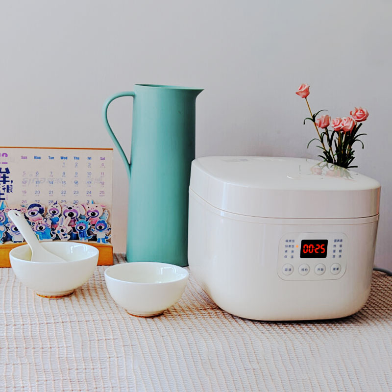 Mặt trước Nồi cơm điện Mijia N1 3L nổi bật với màn hình hiển thị màu đen hình chữ nhật cùng 4 nút bấm tròn được bố trí khoa học hai bên. 8 chế độ nấu đa dạng bao gồm: nấu cơm tinh tế, nấu cơm nhanh, nấu cháo, giữ ấm, hấp dinh dưỡng, hâm cơm, làm bánh và hầm súp đáp ứng mọi nhu cầu nấu nướng của bạn. Khi cắm điện và nhấn nút “Bắt đầu”, màn hình LED sẽ hiển thị màu đỏ báo hiệu nồi đang hoạt động.