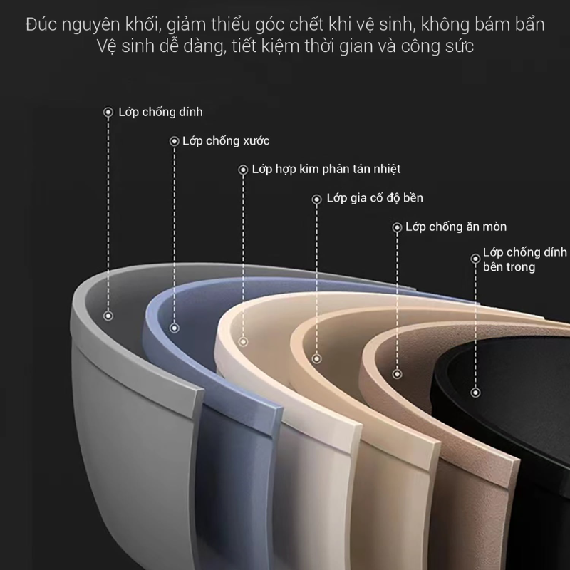 Đặc biệt, lớp chống dính, chống xước và chống ăn mòn giúp bảo vệ nồi khỏi những tác động từ bên ngoài, kéo dài tuổi thọ sản phẩm. Thiết kế liền mạch, không góc chết giúp việc vệ sinh trở nên dễ dàng, tiết kiệm thời gian, công sức cho người nội trợ.