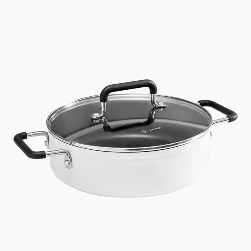 Nồi hợp kim nhôm Lumias LMP-002CM chính là người bạn đồng hành đắc lực trong gian bếp của mọi gia đình. Thiết kế thân nồi 6 lớp nhôm đúc nguyên khối, đáy nồi composite từ tính, lớp phủ chống dính cao cấp, nắp kính cường lực có lỗ thoát hơi giúp quá trình nấu nướng diễn ra nhanh chóng hơn. Bên cạnh đó, nồi Lumias LMP-002CM có thiết kế nhỏ gọn, trọng lượng nhẹ, dễ dàng di chuyển đến nhiều vị trí khác nhau trong gian bếp.