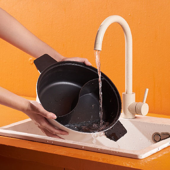 Nồi lẩu 2 ngăn Xiaomi Zhiwu Zhu ZGYY001ACM thiết kế nguyên khối, dẫn nhiệt đồng đều. Có lớp chống dính hiệu quả và an toàn vệ sinh thực phẩm.