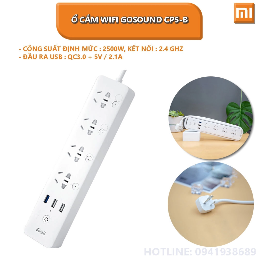 1: Ổ cắm điện thông minh Xiaomi Gosund CP5 Wifi 3 USB, kết nối App MiHome