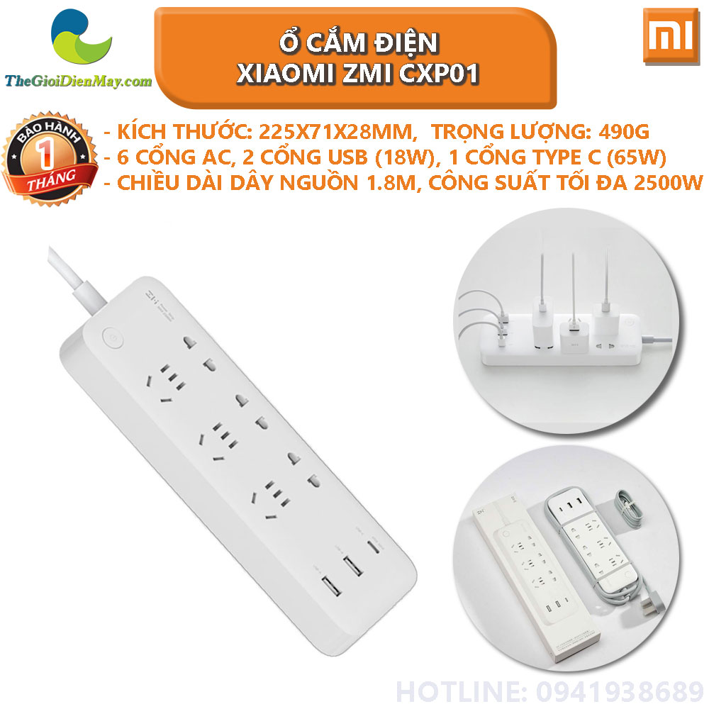 Ổ cắm điện Xiaomi ZMI CXP01 65W tích hợp 3 cổng USB là một ổ cắm thế hệ mới với 6 đầu cắm đa dạng, trang bị nhiều công nghệ hiện đại cùng với khả năng sạc nhanh cho các thiết bị di động, Laptop với công suất lên đến 65W. Đây sẽ là một lựa chọn tuyệt vời để sử dụng trong ngôi nhà của bạn.