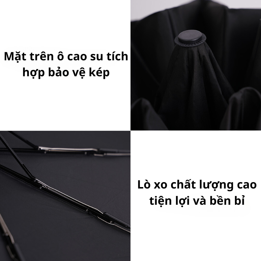 Ngoài ra, nhà sản xuất rất tinh tế khi trang bị tay cầm bằng nhựa ABS, hoàn toàn an toàn với làn da của con người và đặc biệt thân thiện với môi trường. Để đem lại tính thẩm mỹ cho chiếc ô của bạn và an toàn cho người dùng thì ở tại các đầu nhọn khung xương của ô có các hạt nhựa che đi. Phần đầu của chiếc dù còn được bao bọc bởi lớp cao su mềm mại, tránh va chạm gây thương tổn cho người dùng và những người xung quanh.